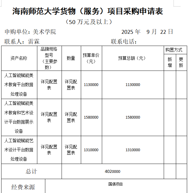 海南师范大学货物(服务)项目采购申请表 (50万元及以上)