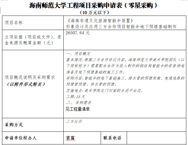 海南师范大学工程项目采购申请表(零星采购) (10万元以下)