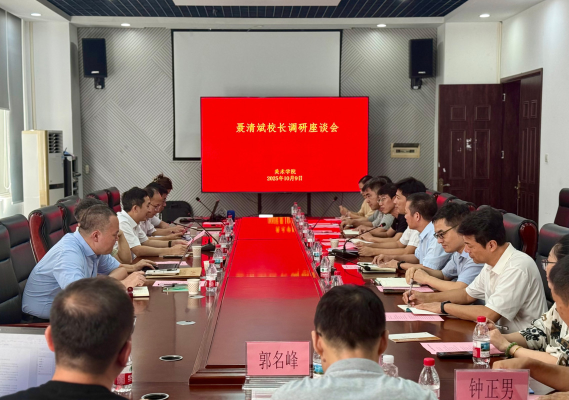 10月9日,校长聂清斌到美术学院调研座谈。学校党政办、人事处、发展规划与学科建设中心、人文社科院相关负责人出席会议,美术学院党政领导班子成员、各系部主任及部分教师参会。